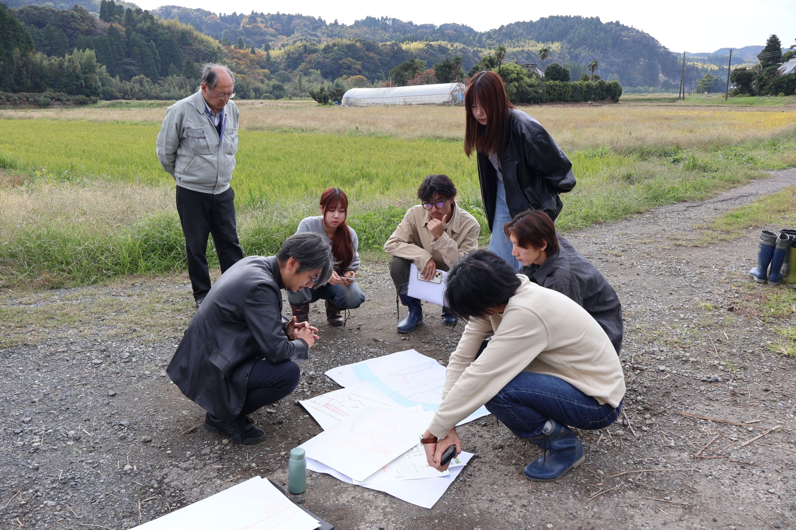 現在、大多喜町で計画中のキャンプ場の敷地調査を行いました。夷隅川と敷地中央に用水が流れる特性を活かして、水をテーマに設計を進めています。